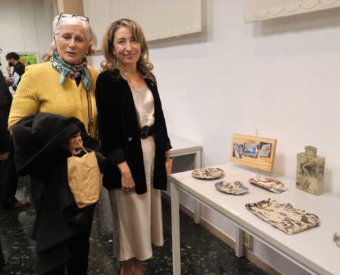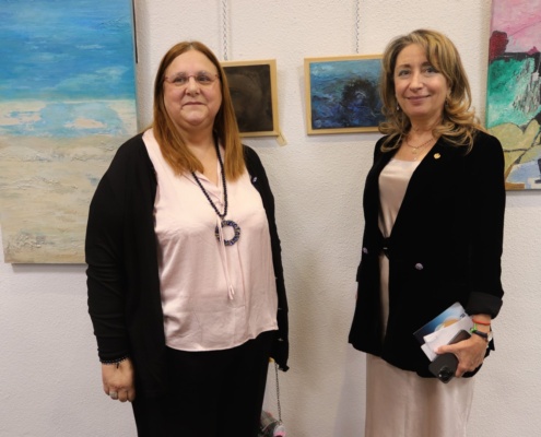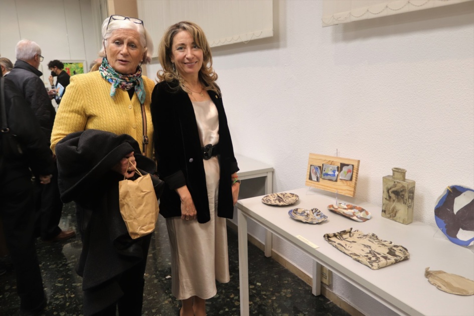 La presidenta del ICOMV, la doctora Mercedes Hurtado, inauguró ayer la exposición junto a la doctora Mª Luisa Esparcia, presidenta de la Asociación de Médicos Artistas.