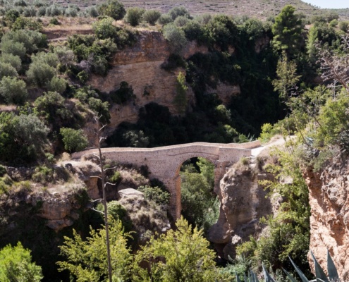 Las otras dos joyas del patrimonio histórico-artístico de Chelva se hallan lejos del casco antiguo, pero consideramos imprescindible su visita. Nos referimos, en primer lugar, al acueducto romano de Peña Cortada, una gran obra de ingeniería hidráulica construida antes de la era cristiana, entre Chelva y Calles. También vale la pena visitar el Santuario de la Virgen del Remedio, patrona del pueblo, situada en la ladera del Pico del Remedio, recayente a Chelva. Desde el santuario se aconseja acceder hasta la cumbre de la montaña (a 1.054 metros de altitud), desde donde se pueden contemplar magníficas vistas panorámicas. En días claros y con la atmósfera limpia se ve el lago de la Albufera y el mar Mediterráneo.