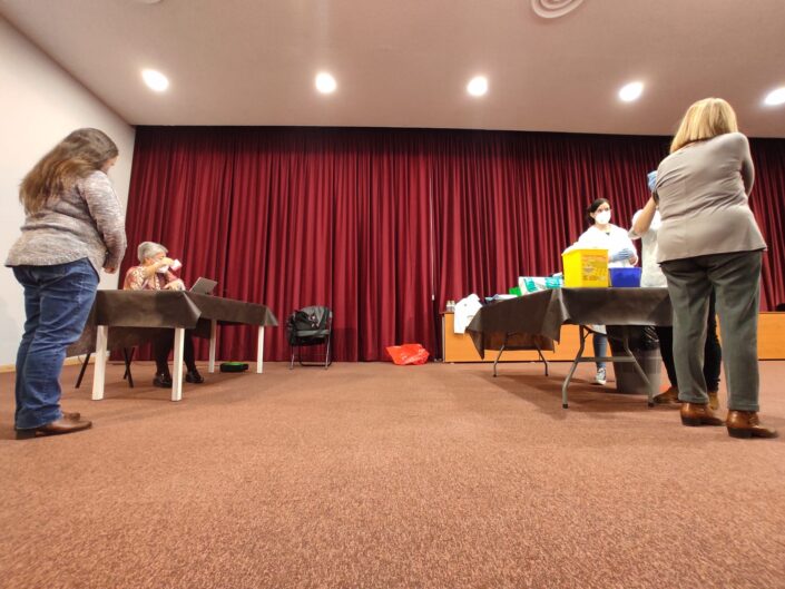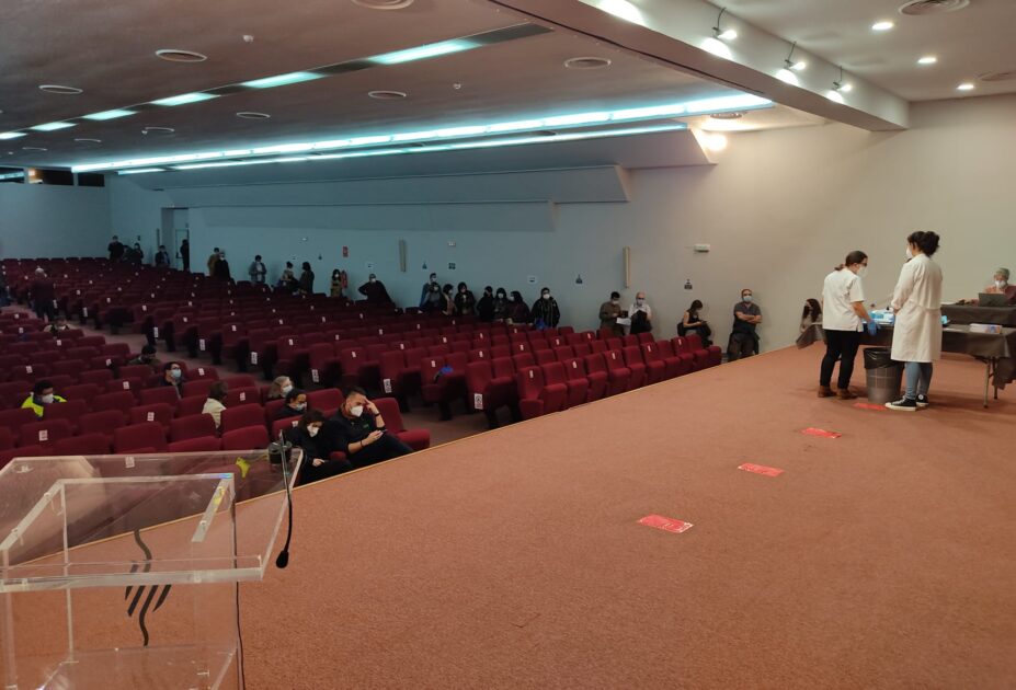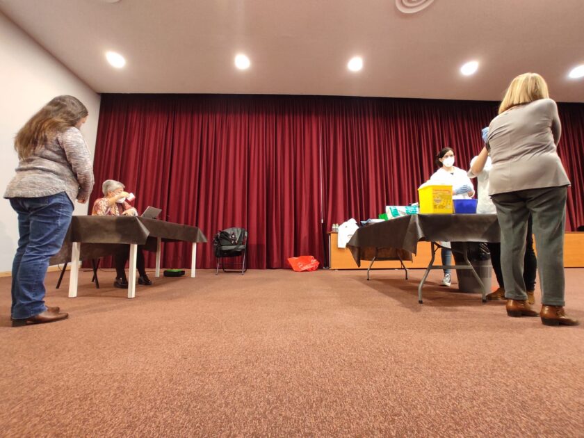 El proceso de vacunación se realizó ayer tarde entre las 18 y las 21 horas, en el amplio salón de actos, atendiendo a las medidas de seguridad y aforo permitido que contempla el protocolo de vacunación.