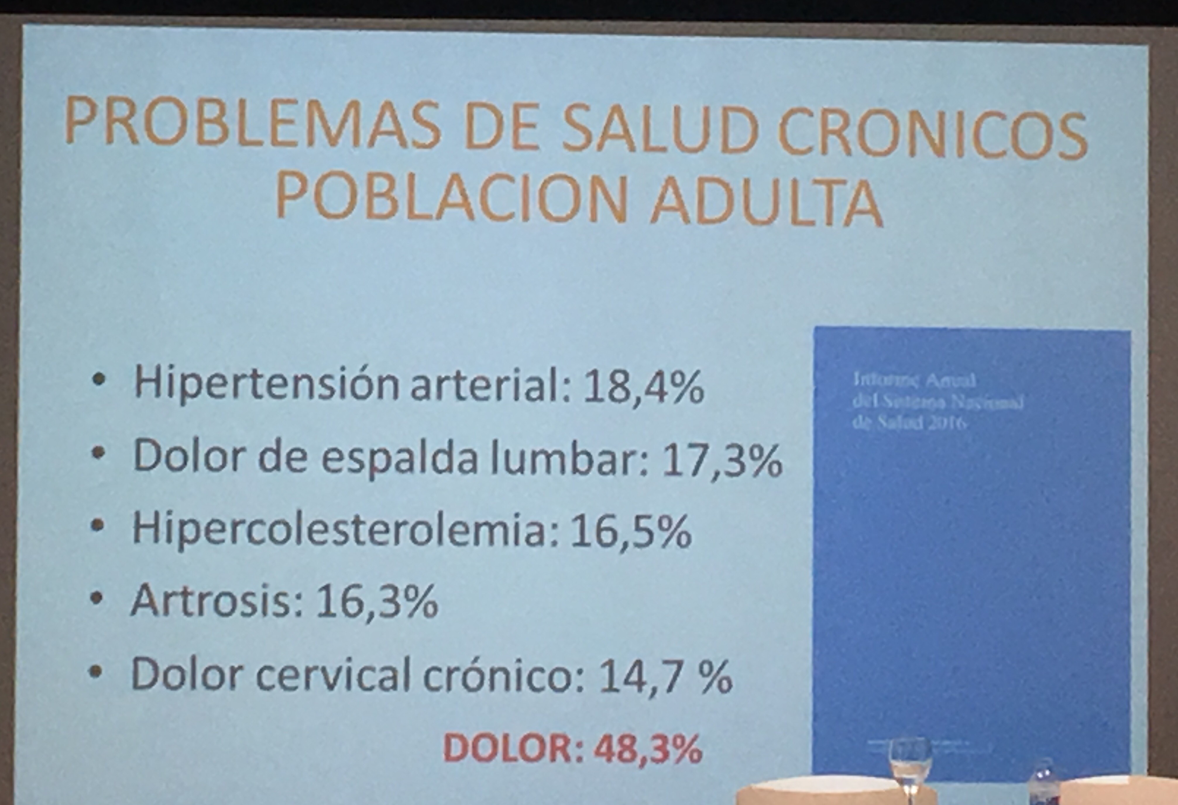 Del mismo modo, durante la jornada se ha detallado el impacto del dolor en los problemas de salud crónicos en la población adulta. Así, de los principales problemas detallados en el Informe Anual del Sistema Nacional de Salud como son la hipertensión arterial, el dolor de espalda lumbar, hipercolesterolemia, la artrosis y el dolor cervical crónico, el dolor está presente en el 48% de estas patologías.