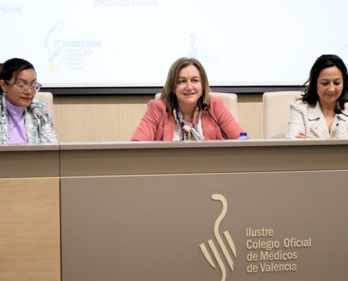 La tesorera del ICOMV, la doctora Verónica Paz, participó en la inauguración de las Jornadas junto a la directora general de Atención Primaria de la Conselleria de Sanitat, la doctora Eva Suárez, y la presidenta de SEMERGEN-CV, la doctora Inmaculada Cervera.
