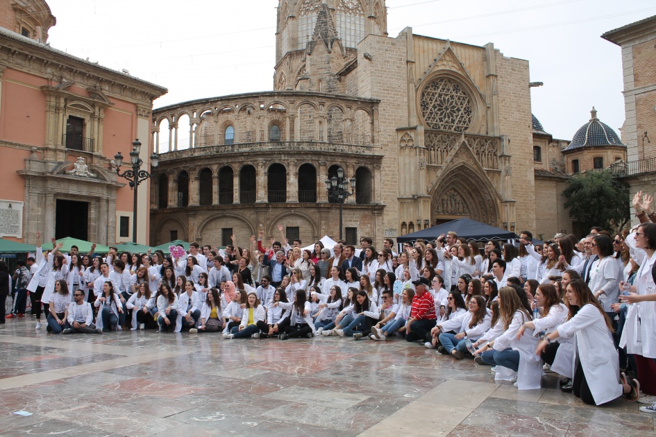 El 6 de abril más de 300 estudiantes de medicina -y otras disciplinas sanitarias- celebran en la Plaza de la Virgen la conmemoración del Día Mundial de la Salud. Un acto que se celebra desde hace trece ediciones y que, desde el principio, ha contado con el apoyo de su futura casa profesional, el Colegio de Médicos de Valencia.
