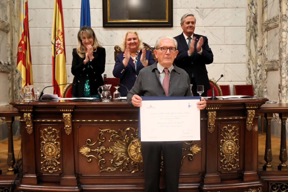 Valencia, 20-2-2025.- La Fundación del Ilustre Colegio Oficial de Médicos de Valencia (ICOMV), junto con el Ayuntamiento de Valencia, han entregado esta tarde el premio ‘XVIII Certamen Médico: reconocimiento a toda su trayectoria profesional’ al doctor Joaquín Berenguer Lapuerta.