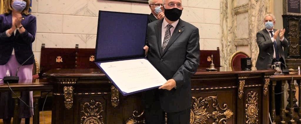 Valencia. 3-12-2020. El alcalde de València, Joan Ribó, junto a la presidenta de la Fundación del Colegio de Médicos, la Dra. Mercedes Hurtado, entregaron ayer en el Hemiciclo del Ayuntamiento el premio ‘Certamen Médico’ al Dr. Miguel Ángel Sanz, especialista en Hematología, investigador Emérito del Instituto de Investigación Sanitaria la Fe y Profesor Honorario del Departamento de Medicina de la Universitat de València. Esta distinción es un reconocimiento a toda su trayectoria profesional dedicada a la medicina valenciana, está promovida por la Fundación del Ilustre Colegio Oficial de Médicos de Valencia (ICOMV) y cuenta con la colaboración del Ayuntamiento de la ciudad.