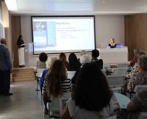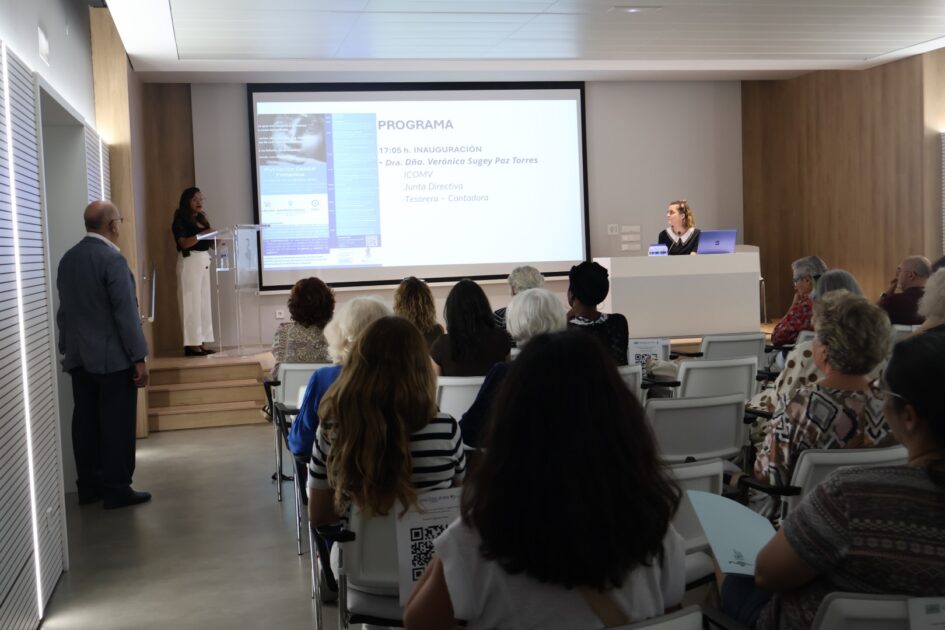 El acto de apertura ha estado a cargo de la tesorera del ICOMV, la Dra. Paz quien ha querido subrayar la dimensión humana de esta práctica, recordando que “la mutilación genital femenina no es solo un problema de salud, es una herida social y humana que exige nuestra atención, nuestra escucha y nuestro respeto”. También ha agradecido la implicación de los y las profesionales asistentes y ha reconocido la labor de la Comisión organizadora: “Gracias por mantener viva la brújula ética de nuestra profesión”.