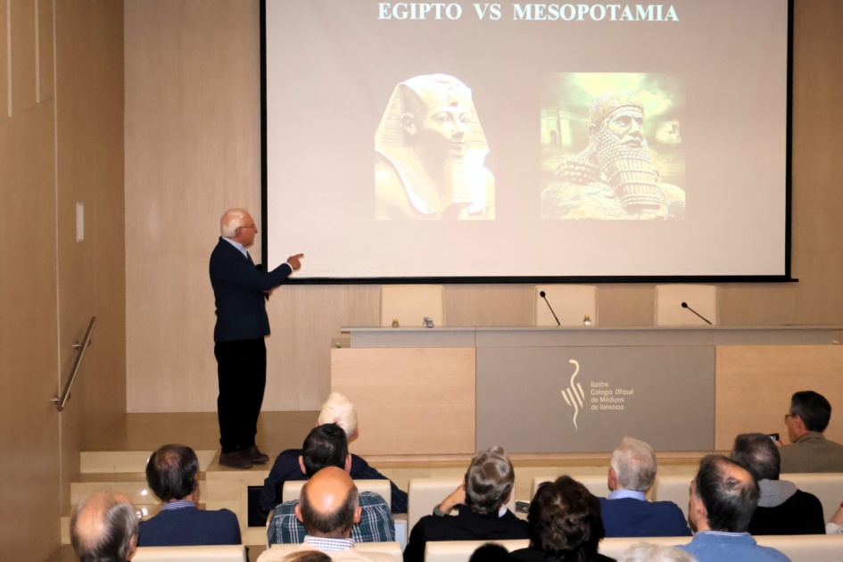 Valencia, 20-2-2024.- El Ilustre Colegio Oficial de Médicos de Valencia (ICOMV) acogió en la tarde del 20 de febrero la conferencia ‘Egipto vs Mesopotamia’, organizada por el Instituto Valenciano de Egiptología, e impartida por el doctor Vicente García Fons.
