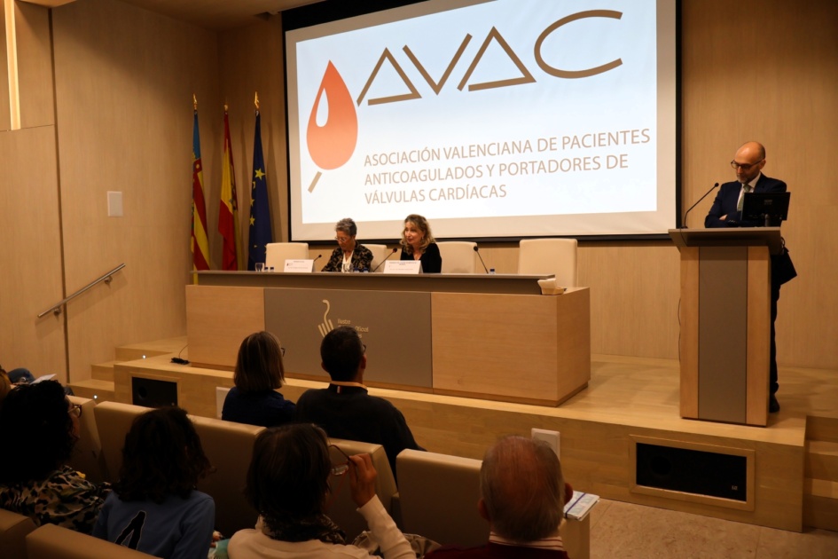 Valencia, 21-11-2023.- El Ilustre Colegio Oficial de Médicos de Valencia acoge durante la jornada de hoy el acto “En primera persona”, organizado por la Asociación Valenciana de Anticoagulados y Portadores de Válvulas Cardíacas, con motivo de su 35º aniversario, y en conmemoración por el Día Nacional del Paciente Anticoagulado.