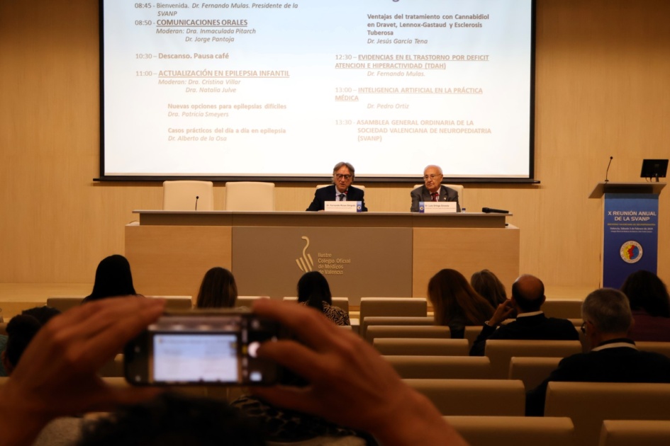 Valencia, 3-2-2024.- El Ilustre Colegio Oficial de Médicos de Valencia (ICOMV) acoge en sus instalaciones la celebración de la X Reunión Anual de la Sociedad Valenciana de Neuropediatría (SVANP). En la mañana del sábado se ha celebrado la inauguración de la jornada, a cargo del vicepresidente 2º del ICOMV, el doctor Luis Ortega, y el presidente de la SVANP, el doctor Fernando Mulas.
