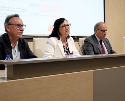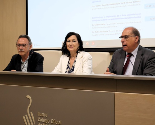 El vicepresidente 1º del ICOMV, el Dr. Pedro Ibor, inauguró la jornada junto a la presidenta de AVELAC, la Dra. Cristina Aguado, y el vicepresidente de AVELAC, el Dr. Arturo Carratalá.