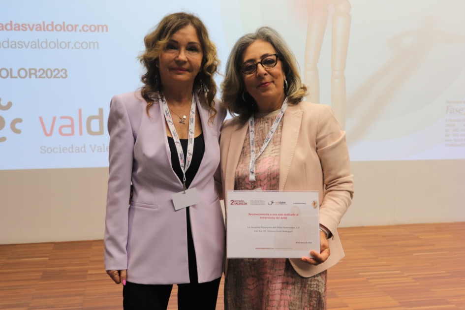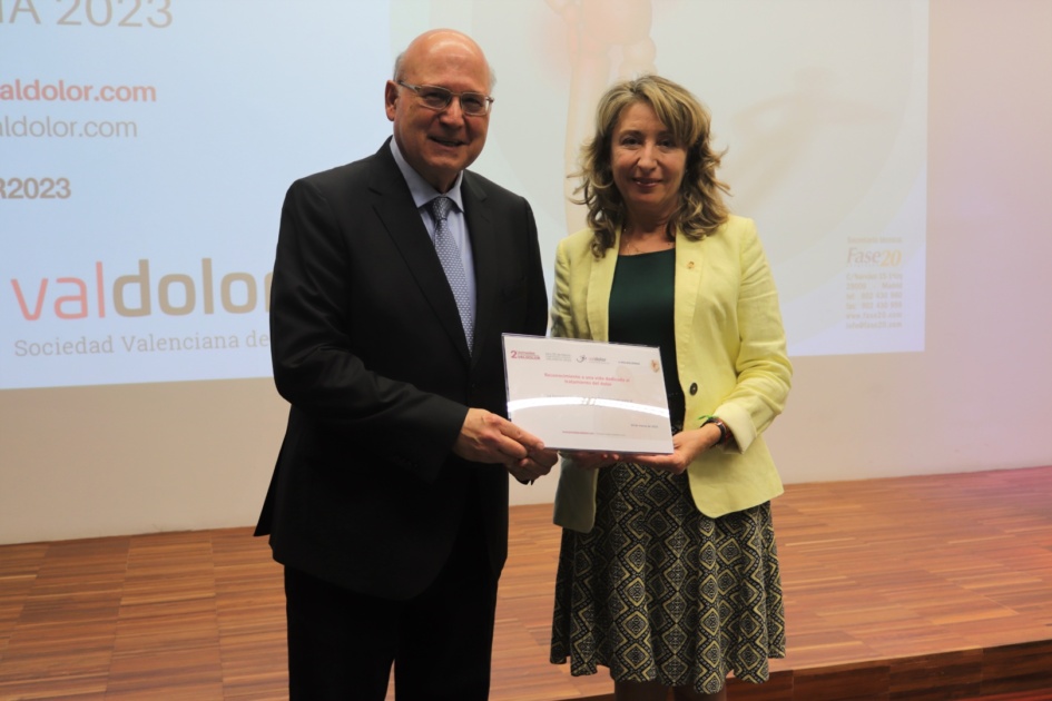 Tras la inauguración, la Sociedad Valenciana del Dolor homenajeó a tres figuras relevantes de la sanidad valenciana, con el galardón “Reconocimiento a toda una vida dedicada al tratamiento del dolor”. Este año fueron reconocidos: