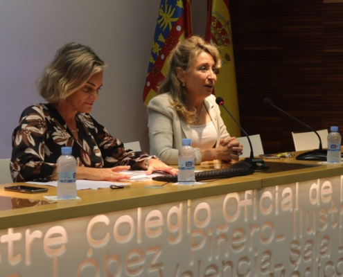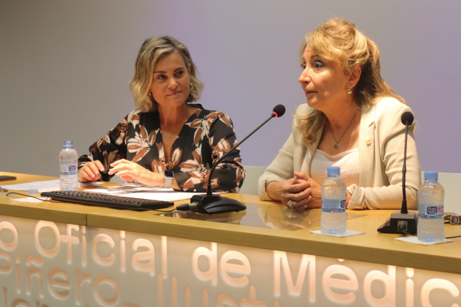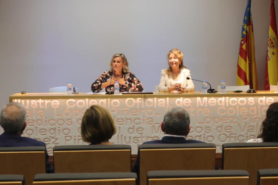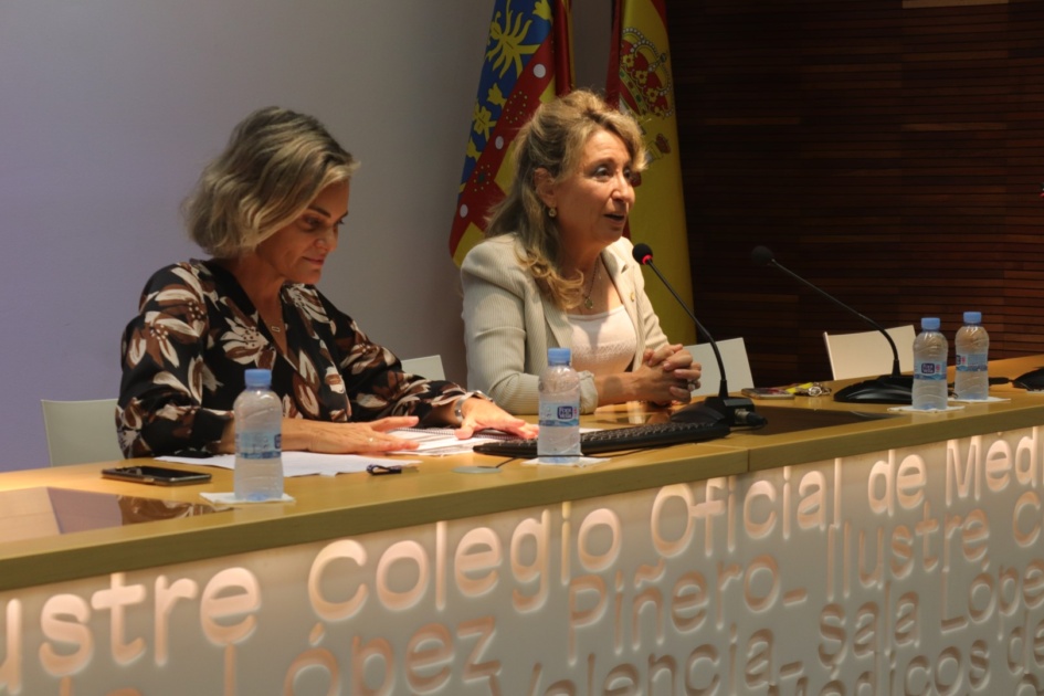 La presidenta del ICOMV, la doctora Mercedes Hurtado, ha inaugurado la jornada junto a la presidenta de la SoVaMFIC, la doctora Mª Ángeles Medina.