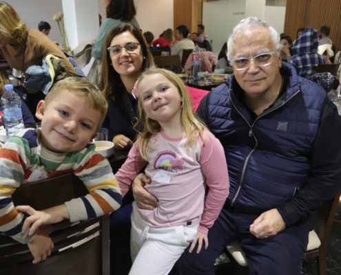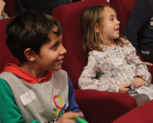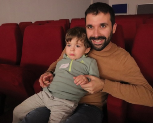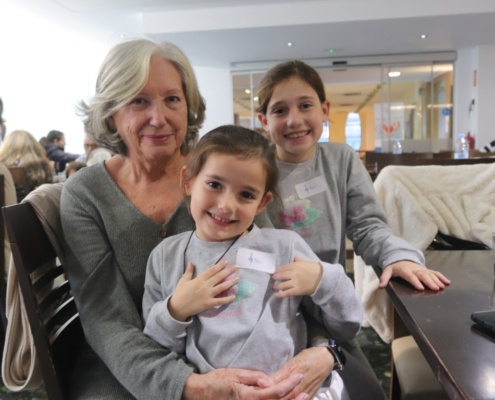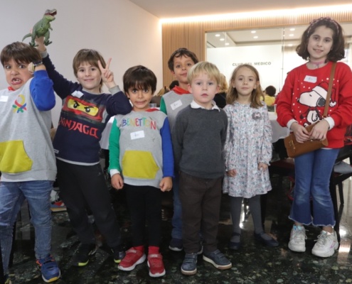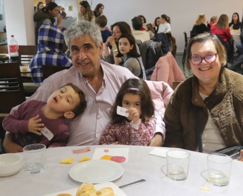 La velada comenzó con una merienda en la cafetería del ICOMV para los pequeños de distintas edades, desde bebés hasta niños de alrededor de 12 años, compartieron mesa, merienda, risas y estuvieron jugando en los alrededores del salón de la cafetería.