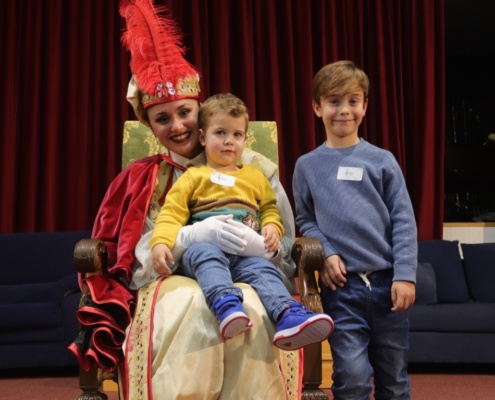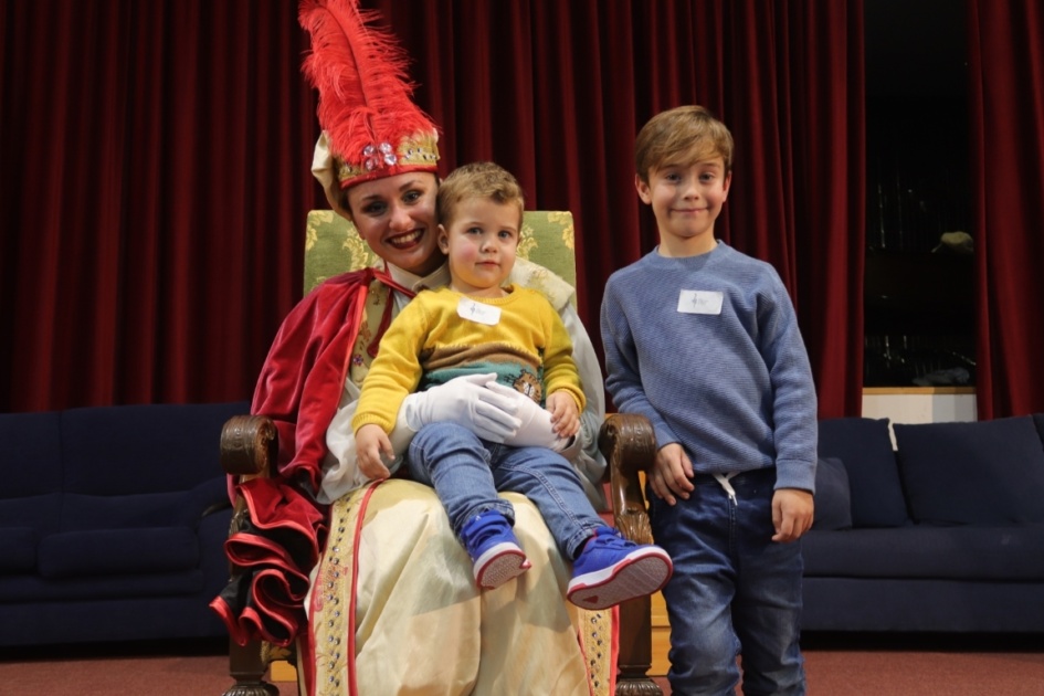 Finalmente, y como no podía ser de otra manera, el evento terminó con la visita del paje real. Los niños hicieron una gran cola alrededor de la sala y esperaron su turno para explicarle al paje qué querían pedirle a los Reyes Magos de Oriente.