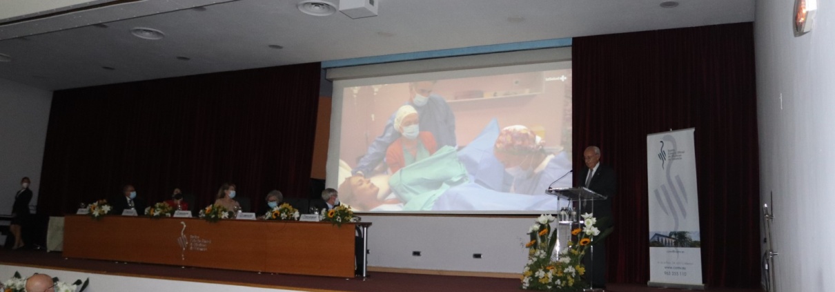 El Dr. Ortega, vicepresidente segundo del Colegio, fue el encargado de presentar el evento, mientras la presidenta del ICOMV, la Dra. Mercedes Hurtado-sarrio, estaba en la mesa presidencial junto con el vicepresidente, el Dr. Pedro Ibor, la presidenta de la RAMCV, la Dra. Leal, la presidenta del Instituto Médico Valenciano, la Dra. Carmela Moya, y el decano de la Facultad de Medicina, el Dr. Javier Chorro.