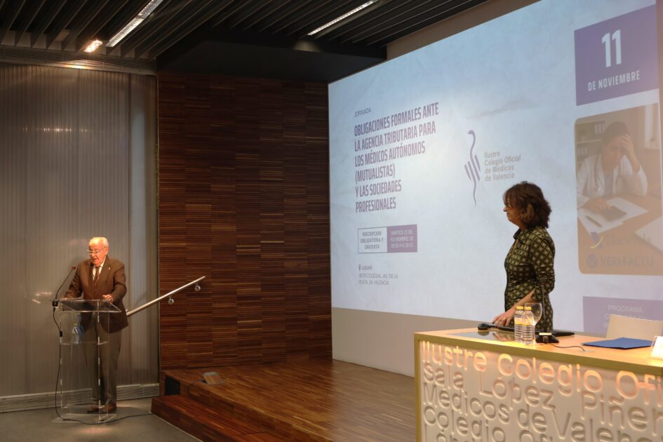 12.11.25. El Ilustre Colegio Oficial de Médicos de Valencia (ICOMV) celebró ayer en su sede una sesión informativa dirigida a los profesionales que ejercen por cuenta propia, con el objetivo de aclarar las obligaciones formales ante la Agencia Tributaria y las novedades normativas en materia de facturación.