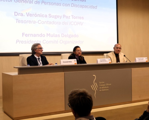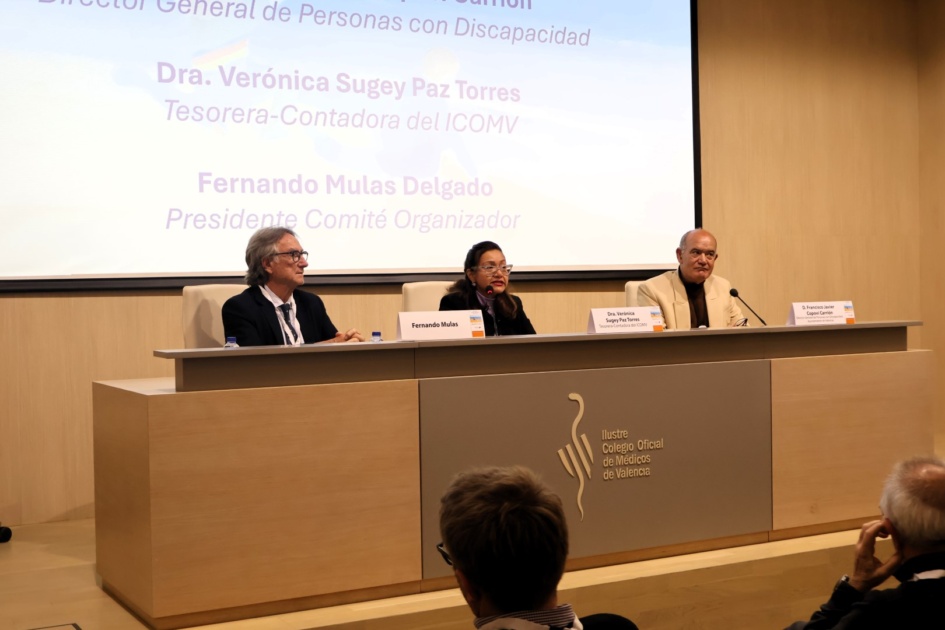 La inauguración del congreso se celebró en la tarde del viernes, y contó con la participación de la Dra. Verónica Paz, tesorera del ICOMV; Javier Copoví, Director General de Personas con Discapacidad del Ayuntamiento de Valencia, y el Dr. Fernando Mulas, director médico del INVANEP.