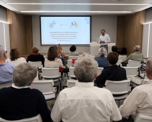 La conferencia ha corrido a cargo de Eladio Collado Boira, Decano de la Facultad de Ciencias de la Salud de la UJI y director de la Cátedra de Actividad Física y Oncología ‘Fundación José Soriano Ramos’ de la Universitat Jaume I.