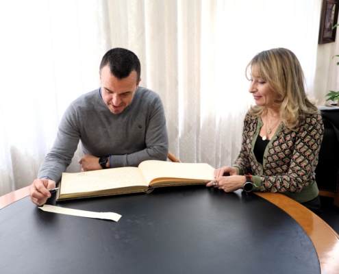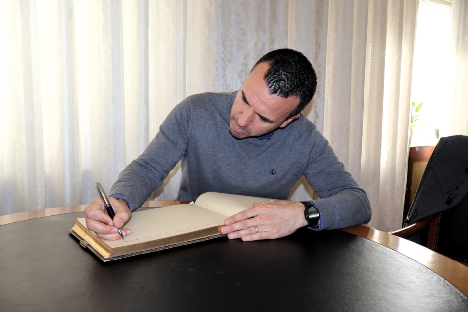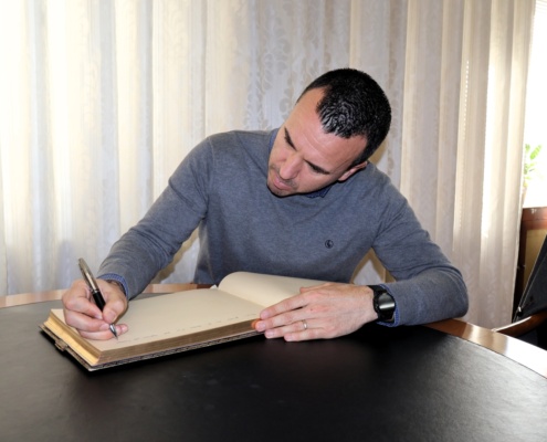 El presidente Mompó firmó en el Libro de Honor del Colegio de Médicos, al ser ésta su primera visita a las instalaciones de la sede colegial.