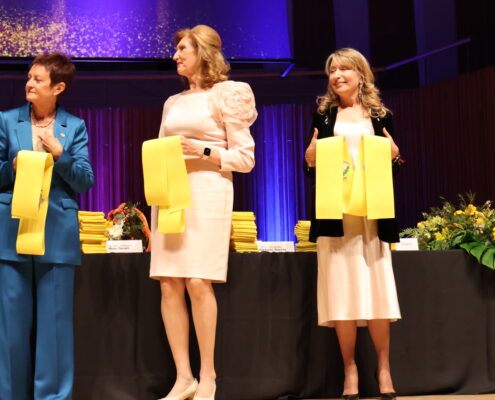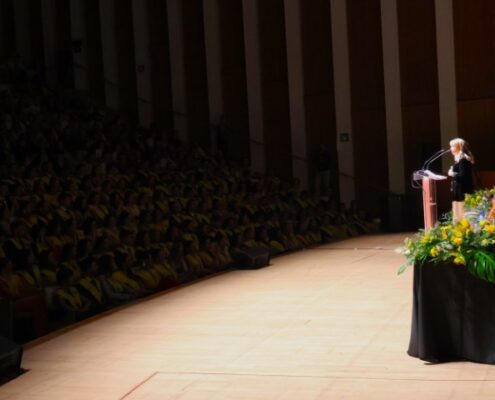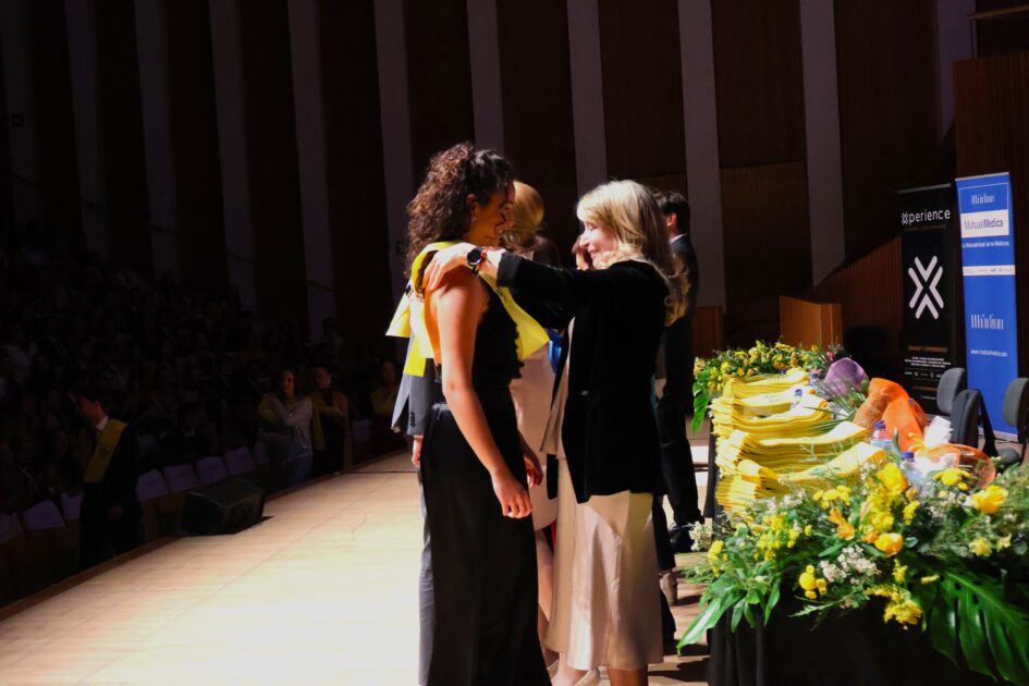 En su intervención, la doctora Hurtado destacó el arduo trabajo y dedicación de los estudiantes durante los seis años de formación, marcados, además, por la pandemia de la COVID-19. Además, reconoció el papel fundamental de las familias en este proceso y pidió a los graduados que mostraran su agradecimiento con una emotiva ovación, que resonó en el auditorio durante más de un minuto.