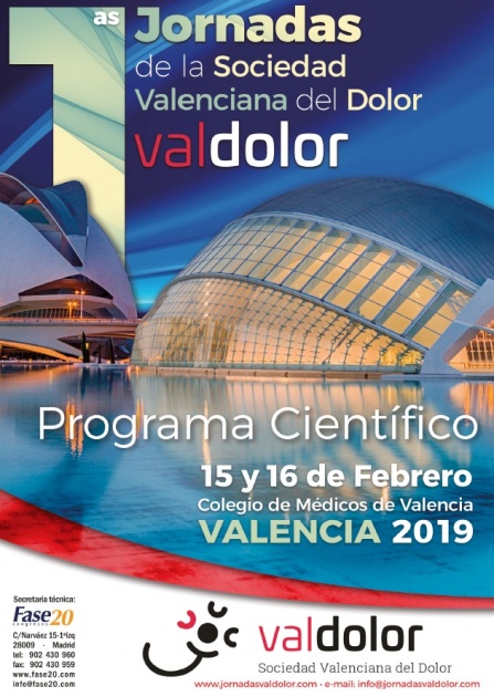 Los días 15 y 16 de febrero de 2019 celebraremos las 1as Jornadas de la Sociedad Valenciana del Dolor (VALDOLOR) bajo el lema “Avances. en el Tratamiento MULTIDISCIPLINAR del dolor crónico”.