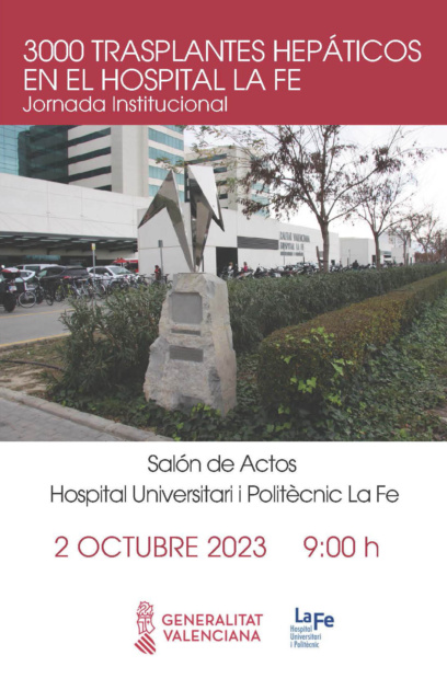 El Hospital La Fe ha alcanzado la cifra de 3000 trasplantes hepáticos y os invitamos a celebrarlo con nosotros en la jornada institucional que tendrá lugar el próximo 2 de octubre en el Salón de Actos del Hospital La Fe.