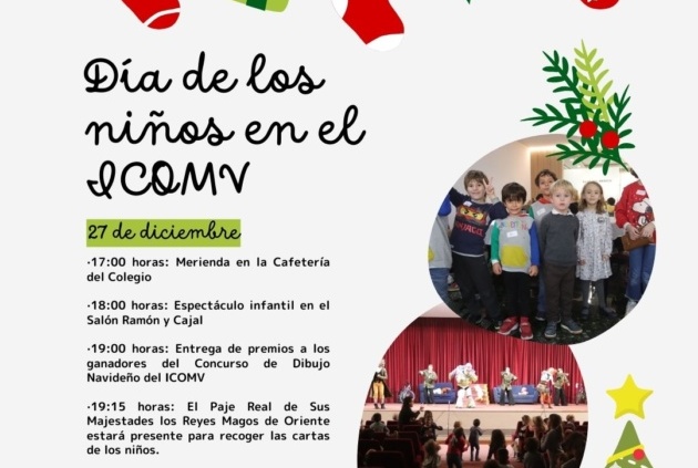 - 19:00 horas: Entrega de premios a los ganadores del Concurso de Dibujo Navideño del ICOMV. Recordamos que el plazo de entrega finaliza el viernes 15 de diciembre. (Toda la información, aquí).