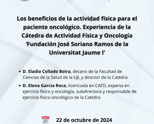 22 de octubre de 2024 a las 18.30 horasSala Barcia Goyanes del ICOMVCharla:Los beneficios de la actividad física para el paciente oncológico.…