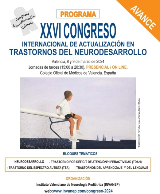 El Instituto Valenciano de Neurología Pediátrica (INVANEP) organiza desde 1999 en Valencia, España, unos cursos de actualización en Neurodesarrollo que por su gran aceptación son ahora un «Congreso Internacional de actualización en TRASTORNOS DEL NEURODESARROLLO», que los días 8 y 9 de marzo 2024 celebra la XXVI edición.