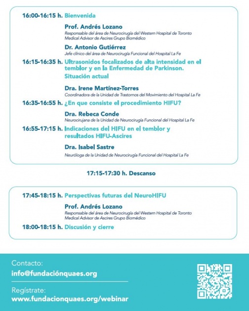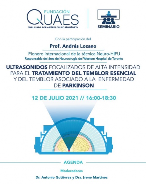 La Fundación Quaes, impulsada por Ascires Grupo Biomédico, organiza el próximo 12 de julio la jornada de neurología en la que participará el profesor Andrés Lozano, pionero internacional en la técnica Neuro – HIFU así como distintos profesionales.
