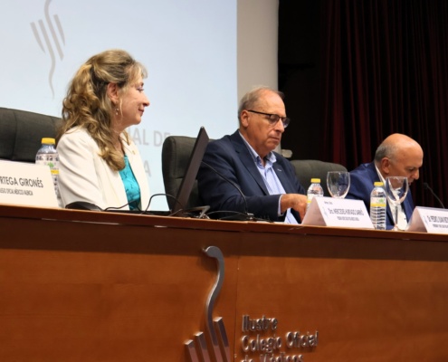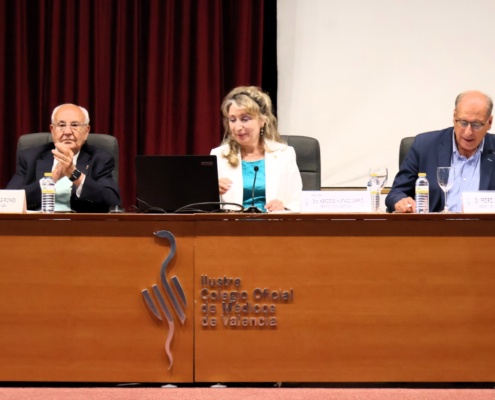 A continuación, la presidenta del ICOMV, la doctora Mercedes Hurtado, desgranó las acciones más destacadas llevadas a cabo durante el pasado año: representación institucional, balance de agresiones, reuniones con colectivos y acciones en beneficio de la profesión médica valenciana.