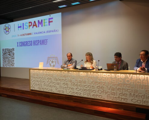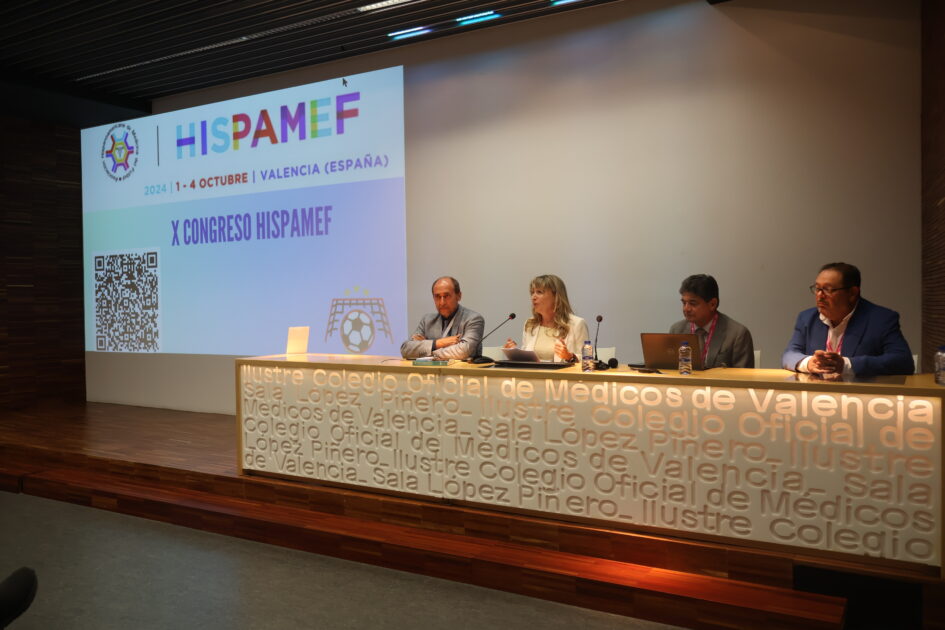 El ICOMV ha acogido la inauguración del X Congreso Internacional de la Asociación Hispanoamericana de Medicina del Fútbol (HISPAMEF), bajo el lema “Medicina de Precisión en el Fútbol”. La presidenta del ICOMV, Dra. Mercedes Hurtado, ha sido la encargada de dar la bienvenida a este importante encuentro que reunirá a profesionales de la medicina y del deporte de países latinoamericanos y de España durante los días 4 y 5 de octubre en la sede del colegio.