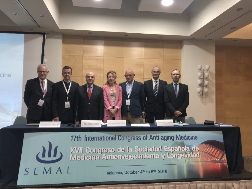 Este matí s’ha inaugurat a València el XVII Congrés Internacional de la SEMAL (Societat Espanyola de Medicina Antienvelliment i Longevitat) . L’acte ha estat presidit per la presidenta del Col·legi de Metges valencià, Mercedes Hurtado, i ha comptat amb el respatler dels representants de la societat científica: el professor José Vinya, president del congrés; el doctor José Serres, president de la SEMAL; Juan Carlos Méndez, secretari general de la Federació Iber llatinoamericana de societats de Medicina Antienvelliment i Longevitat; el professor Antonio Ayala, vicepresident de la SEMAL; i el professor Manuel Castillo, president del comité científic de la SEMAL.
