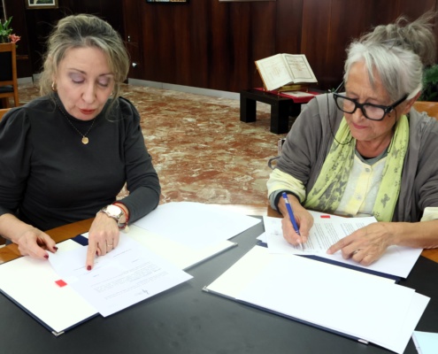La presidenta del ICOMV, la doctora Mercedes Hurtado, ha firmado el convenio junto a Matilde Sauri Aloy, presidenta de la Asociación Carena. A través de dicho documento, el Colegio de Médicos se compromete a difundir la actividad de dicha asociación por los medios de que dispone la corporación.