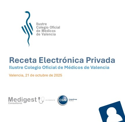 Taller Formativo sobre Receta Electrónica Privada, que se celebrará el próximo 21 de octubre a las 19:00 h en la sede del Ilustre Colegio Oficial de Médicos de Valencia.